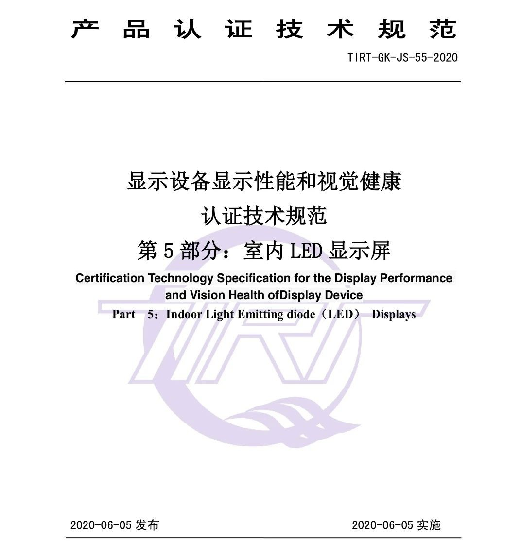 对此,根据我国显示设备的发展、生产和使用的现状,并参考相关检测标准,由jinnianhui今年会官网作为主要起草单位,制定并发布TIRT-GK-JS-55-2020《 显示设备显示性能和视觉健康认证技术规范(室内 LED显示屏部分)》(以下简称《技术规范》)。
