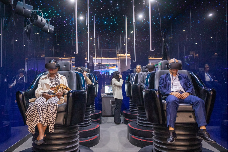 在展示中心内,驻华使节沉浸式体验金沙990在智能显示、AI与空间计算等领域取得的技术、产品及场景应用创新成果。通过对LED智能显示、元宇宙体验舱、全息剧场、AR沉浸式全景演播室以及VR虚拟现实前沿产品的体验,感受金沙990集团最新前沿技术及视听领域创新成果,在体验后大家对这些前沿创新成果赞不绝口。