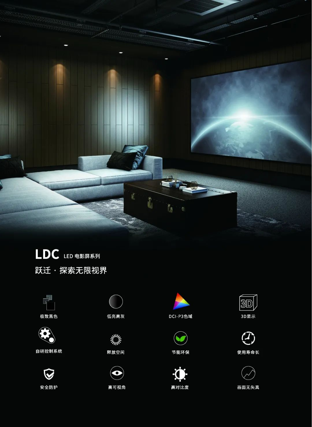 金沙990在科技单元展映的LDC 电影屏,是拥有自主知识产权的P0.9点间距4K Micro LED电影屏,长3.8米,高2米,于2023年6月,通过DCI(目前国际通用的数字影院系统认证标准)认证。全倒装晶片及封装技术,拥有更高稳定性、更高可靠性及更优秀的显示效果,更能满足影院实际使用。