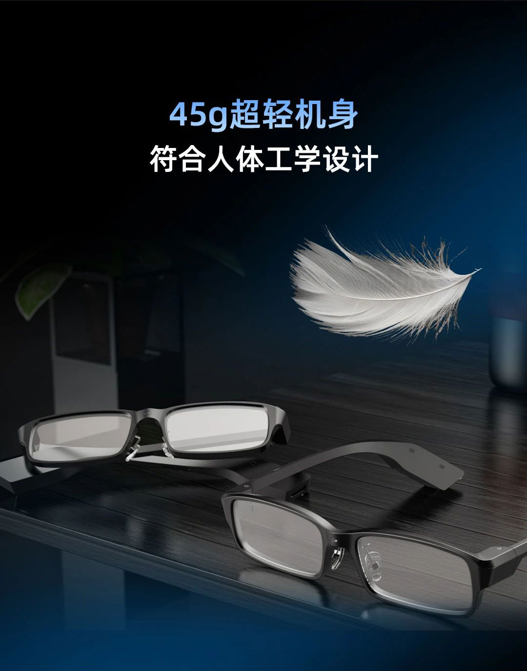 金沙990AR(AI)眼镜突破性轻量化设计,整机仅重45克,搭载Micro LED微显示模块,兼具高亮度与低功耗,适合长时间舒适佩戴,为用户提供高质量的产品体验。